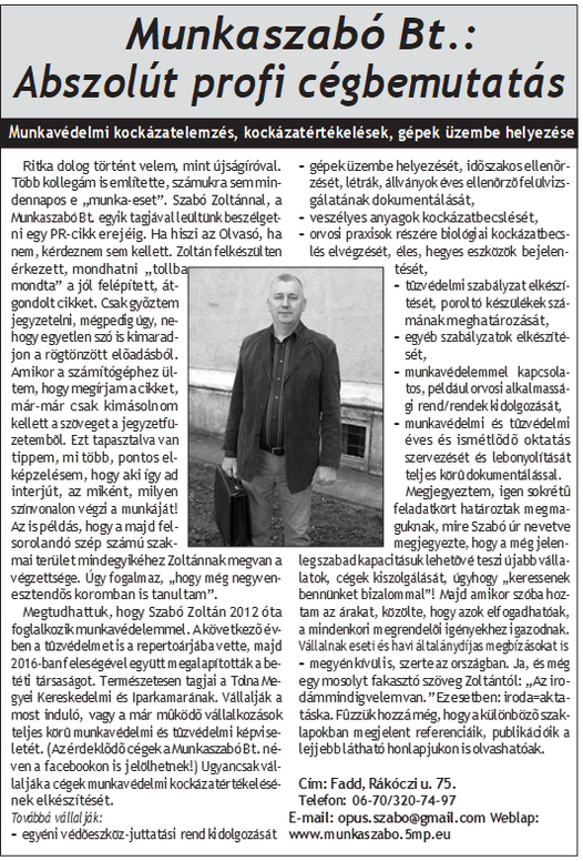 Abszolut profi cégbemutatás a Tolnai Extrában.